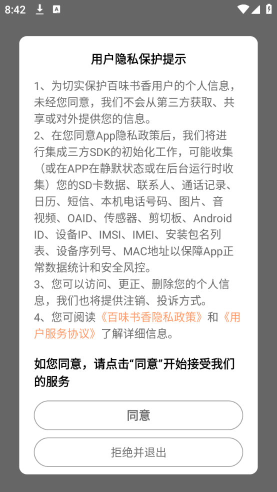 1、首先在本站百味书香,查看并同意隐私政策与用户协议。