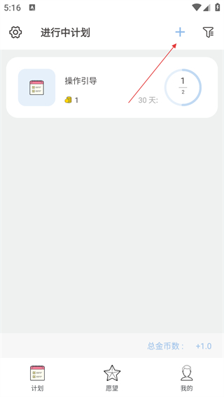 2、进入首页后,点击右上角的【+】按钮,即可开启添加新计划的流程。