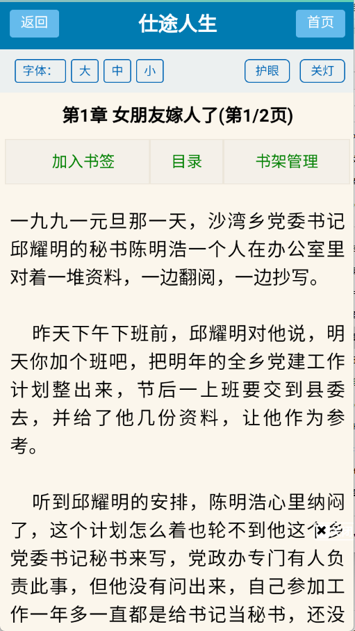 1、阅读界面设计舒适,字体大小支持调节,能够满足不同用户的阅读习惯需求。