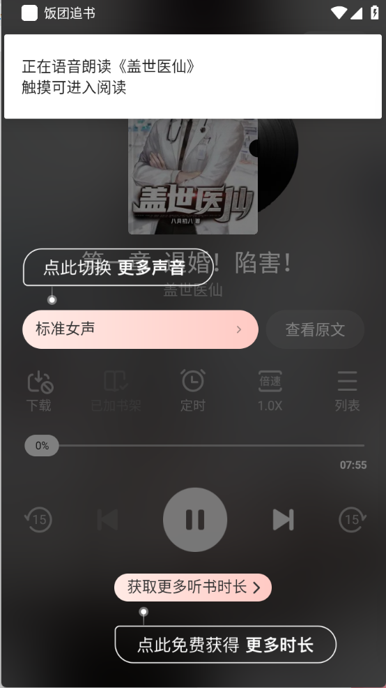 3、永久免费,全场小说全免费,任何一部小说都能畅听,不需要vip会员特权的加持。