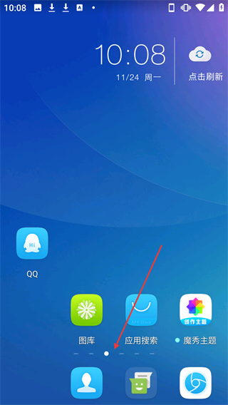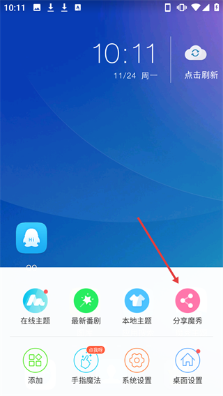 2、在手机桌面弹窗页面找到【分享魔秀】入口。
