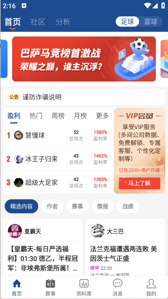 1、用户提供全面的赛事数据分析,包括球队状态、球员表现、战术分析等,帮助用户深入了解赛事情况。