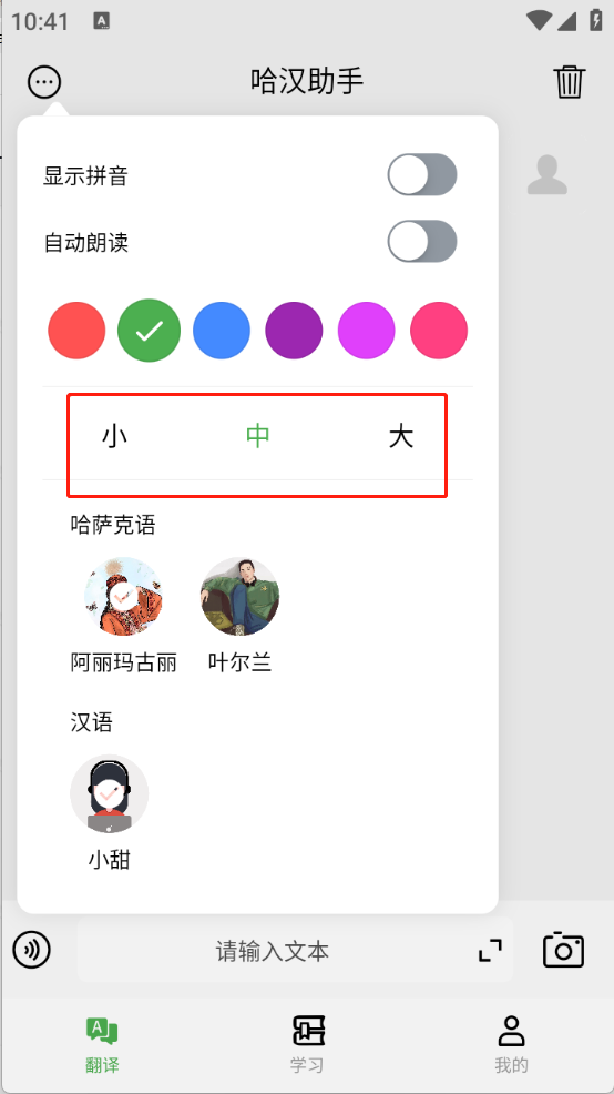 哈汉助手,专门为哈萨克语和汉语打造的翻译助手,所有的功能都是免费的,支持语音输入、文字输入以及拍照识别等方式,翻译机国精准且速度快,可以将翻译的结果进行复制、语音播报,还可以学习哈语和汉语哦。
