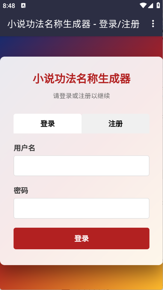 1用户要使用3G游戏网的小说功法名称生成器,第一次使用时得先完成账号注册和登录操作。