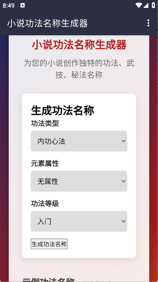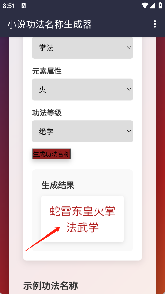 3、生成的功法名称更贴合玄幻、武侠、仙侠等题材的专业调性,能让作品更添吸引力。