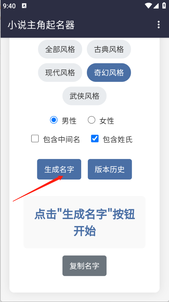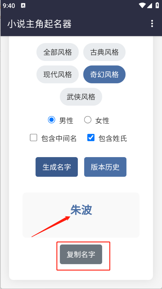 3、一键生成功能,能为用户节省时间,助力其迅速找到心仪的小说人物名字。