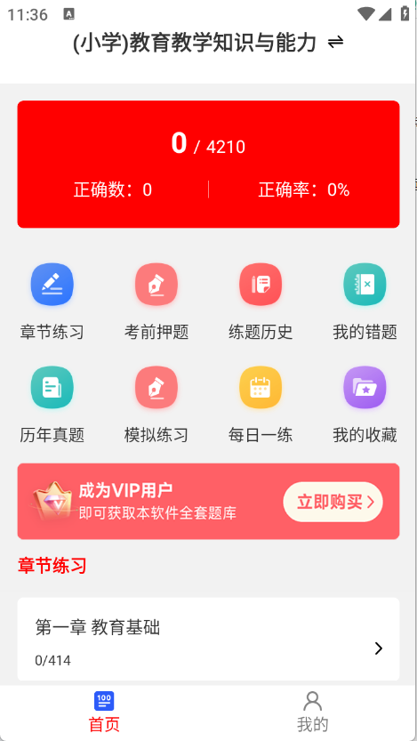 2进入首页后,能看到丰富的题库内容,其中涵盖了章节练习、考前押题与模拟练习等板块。