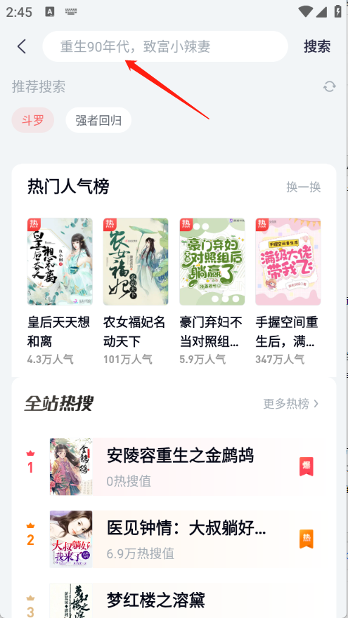 2、排行榜页面将小说根据当前热度进行整理排序。