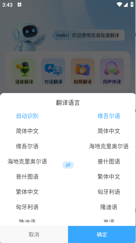 百道极速翻译,支持多种语言的翻译软件,不管是日语、韩语以及西班牙语等等都是可以的,支持拍照翻译、文本翻译以及语音实时翻译等,所有的翻译软件功能都是免费的,享受便捷的翻译体验。
