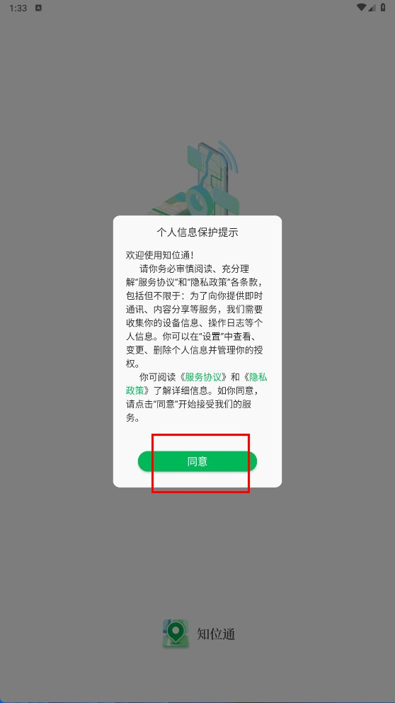1请先勾选同意个人信息保护相关提示,完成确认后即可进入知位通应用。