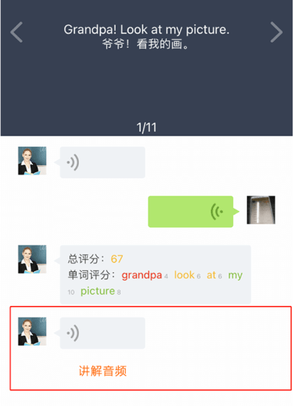 5、完成跟读之后,系统会依据你的跟读情况给出评分并进行讲解,这样能更有效地帮助你纠正发音问题。