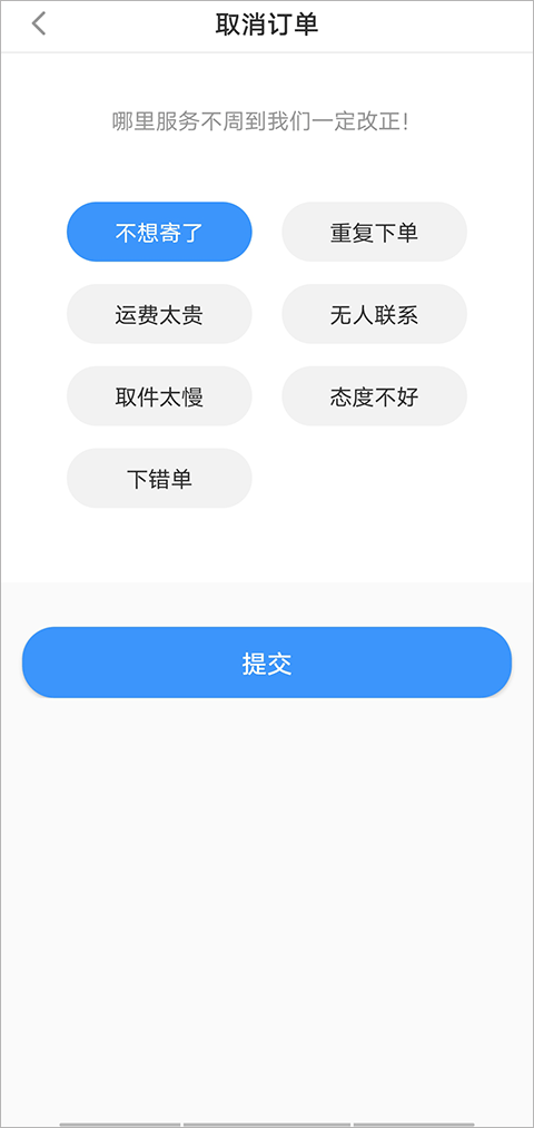 2、若快递员尚未上门取件,可在订单页面点击“取消订单”,并依据实际情况选择合适的取消原因,最后点击提交即可成功取消订单。