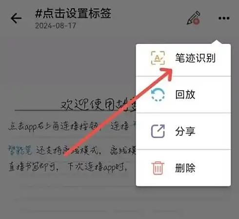 3在后续弹出的功能界面中,找到并点击笔迹识别相关的功能入口,即可启动笔迹识别流程。