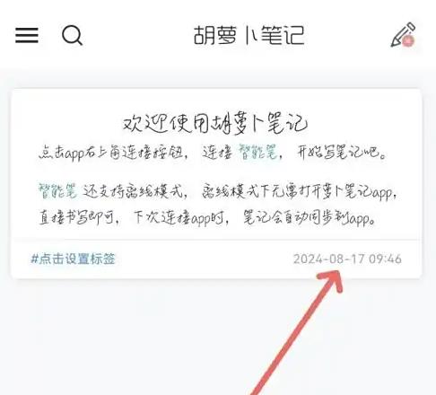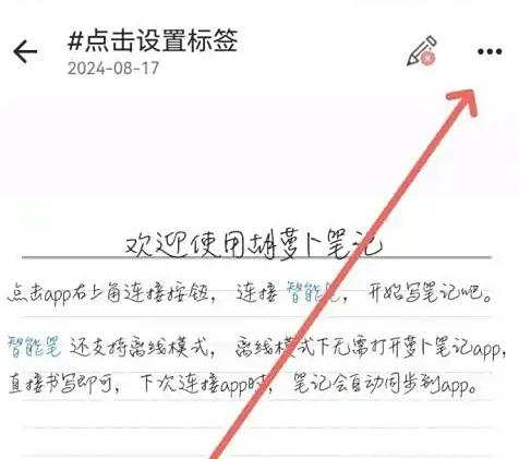 1.打开胡萝卜笔记App,点击右上角智能笔图标