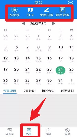 3办公页面集成了龙虎榜、打卡等实用功能,方便员工及时了解考勤记录与项目进展。