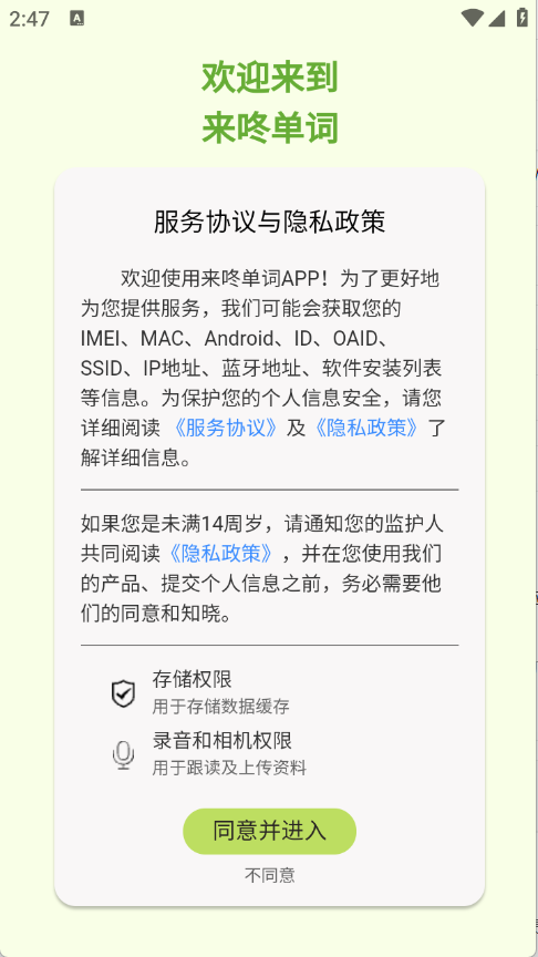 1用户第一步需访问3G游戏网的咚单词功能,在此过程中需查阅并确认接受相关的隐私政策与用户协议条款。