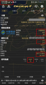 下图为该软件的截图,图中的RSRP指的是基站的信号强度,数值-92表示信号处于一般水平,能够基本保障通话与上网功能的正常使用。