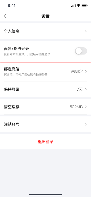 面容/指纹登录与微信登录
