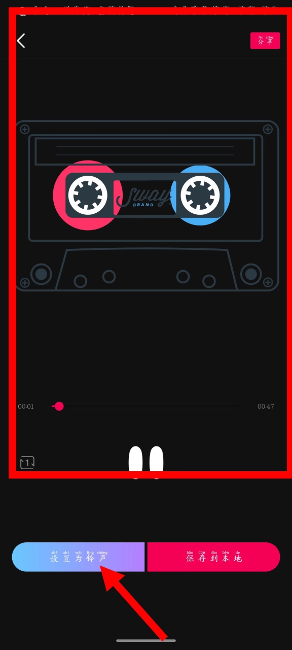 5、进入最终页面后,可选择将其设为铃声或保存至本地,以此完成音乐剪辑操作。
