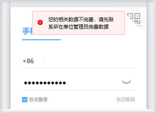 三、登录客户端提示“您的相关数据不完善,请先联系所在单位管理员完善数据”,是什么原因?