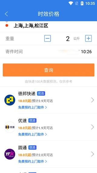 3、它就会为用户提供所有快递的预估价格。