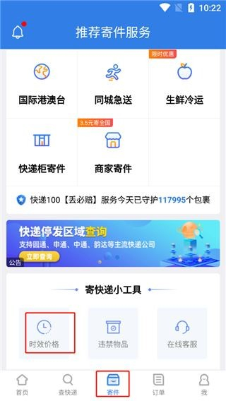1、点击寄件,选择时效查询;