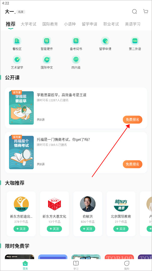 新东方,是当前最火的线上教育平台之一,涵盖了不同学科不同年龄段用户的学习需求,所有的教师都是有着资深教育经验和水平的,家长用户可以在线给孩子报名,再也不用担心孩子的学习问题了,做错的题目会及时的进行记录,让用户能够更好的进行复习巩固,对于相对薄弱的知识点有针对性的进行训练。