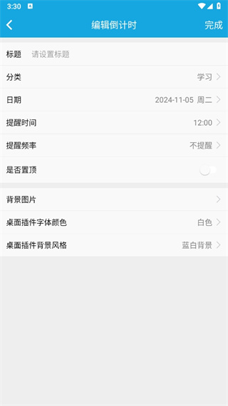 4所有内容填写完毕后,点击右侧顶部的完成按钮,就能启动倒计时功能。