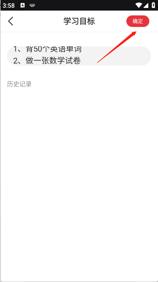 5、填写学习目标,填写完成之后点击右上角的“确定”。