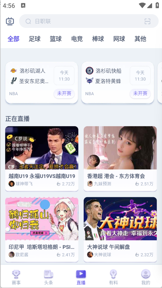 1、观看体育直播,每天可以在线观看各种体育比赛的直播,通过手机观看非常的流畅。