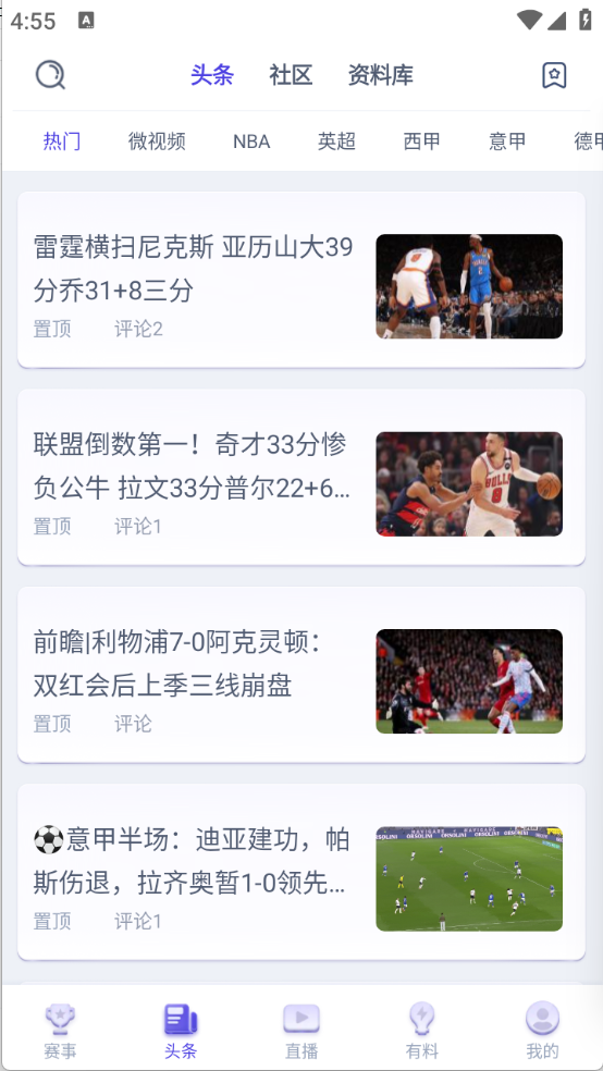 4、头条板块,提供每天的体育新闻,及时了解相关的资讯。