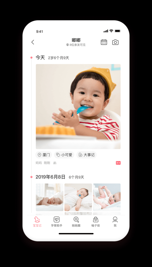 -支持小视频、照片与文字记录宝宝点滴成长;