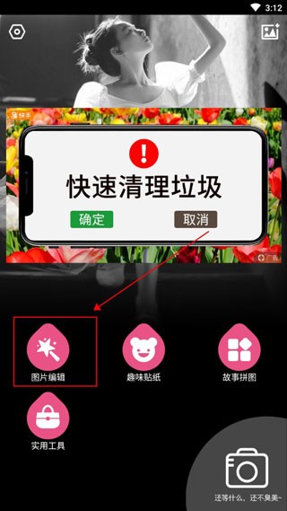 1、启动美颜自拍神器相机应用,进入后点击首页的“图片编辑”功能选项。