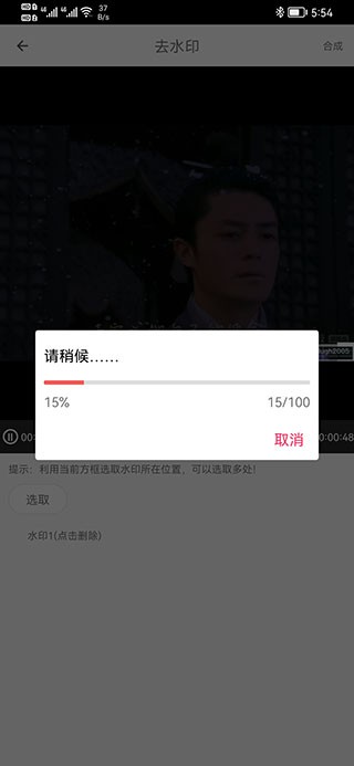 3、去水印操作十分简单,视频界面会出现一个框选区域,只需将水印部分框选在内,点击选取按钮后,下方就会弹出相关列表。