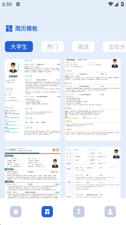 2、输入完成后,用户就可以到【简历模板】界面中选择对应的简历模板,快速制作个人的专属简历。