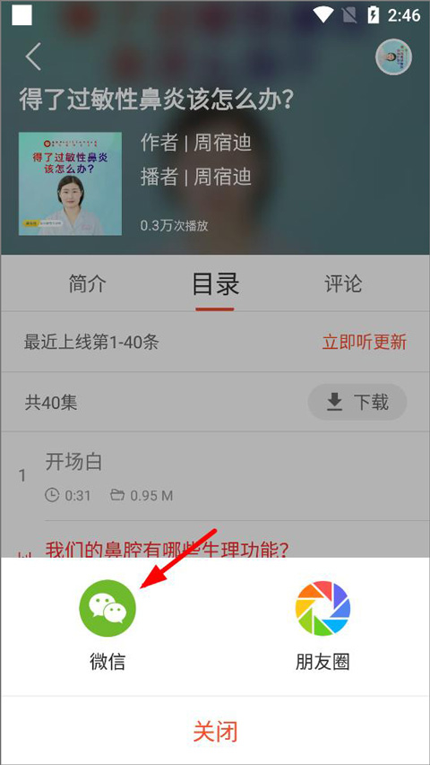 4、点击打开章节页面后,右上角可将内容分享至其他软件。