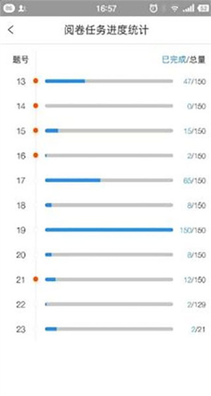 2系统可即时追踪每位教师的阅卷进展,也能查看所有试卷的整体评阅情况,并且具备复核功能。