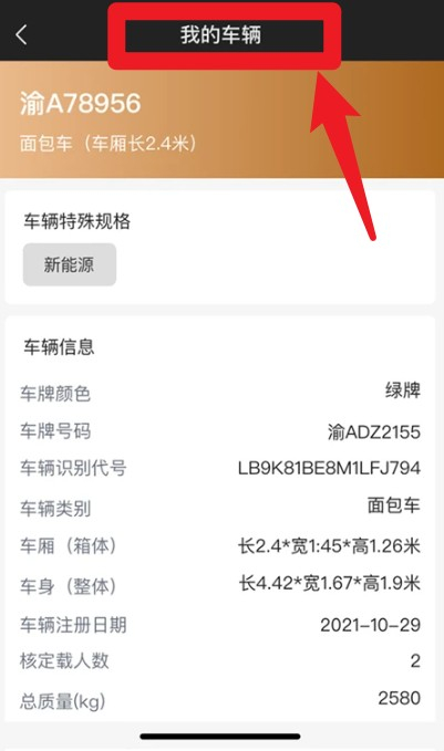 2完成登录操作后,找到并点击“我的车辆”选项,就能看到目前已关联的车辆的具体信息,像车牌、车型以及登记时间等内容都包含在内。