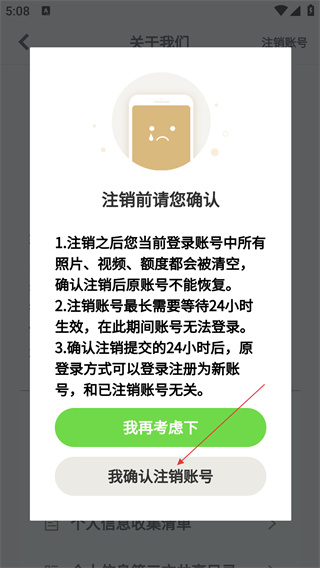 4在进行账号注销的确认界面,需认真阅读相关的注销提示信息,之后点击对应的确认注销账号按钮,就能完成整个账号注销流程。