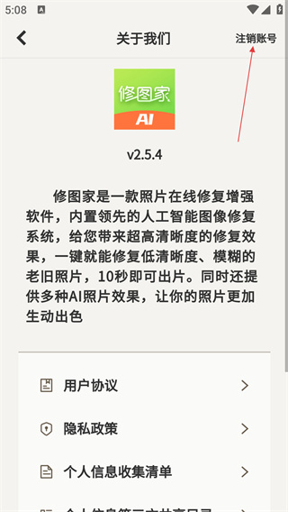 3在“关于我们”页面中,找到页面右上角的“注销账号”选项并点击。