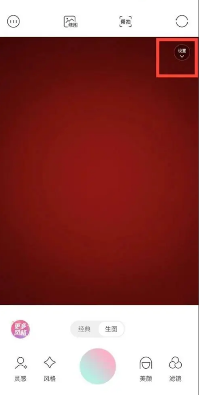 1先启动轻图写真相机应用,进入拍摄页面后,找到并点击右上角的设置按钮。