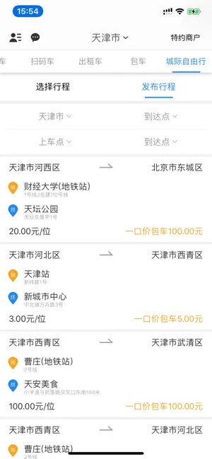 合乘服务——有合乘需求的用户可通过客户端选择实时发布线路,与他人合乘出租车,方便高峰期或拥堵路段出行。