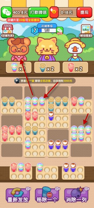 3游戏里还设置了三种辅助道具,你只需观看广告就能解锁使用,它们能帮你更顺利地完成订单。