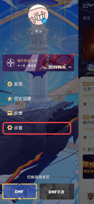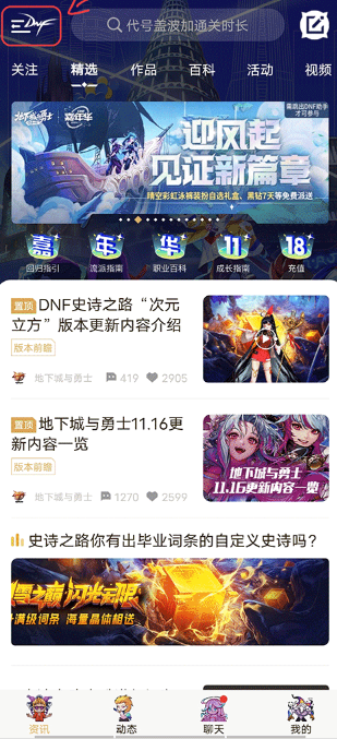 1、启动DNF助手App,点击左上角的“DNF图标”,进入应用菜单;