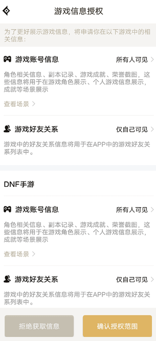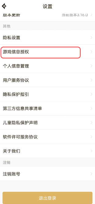 2、选择“设置”→“游戏信息授权”;