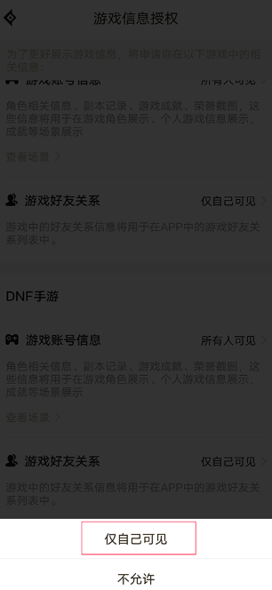 3、在“游戏账号信息”这一栏中,点击“所有人可见”这个按钮;