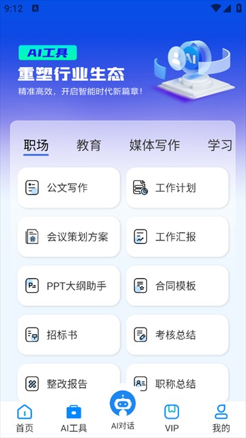 AI智能写作助手能够帮助用户高效完成活动策划、竞品调研、需求文档、创业企划等任务,为用户的职业生涯注入更多灵感和活力。此外,求职简历、日报周报、合同等各类模板也应有尽有,让用户的职场生活更加便捷高效。