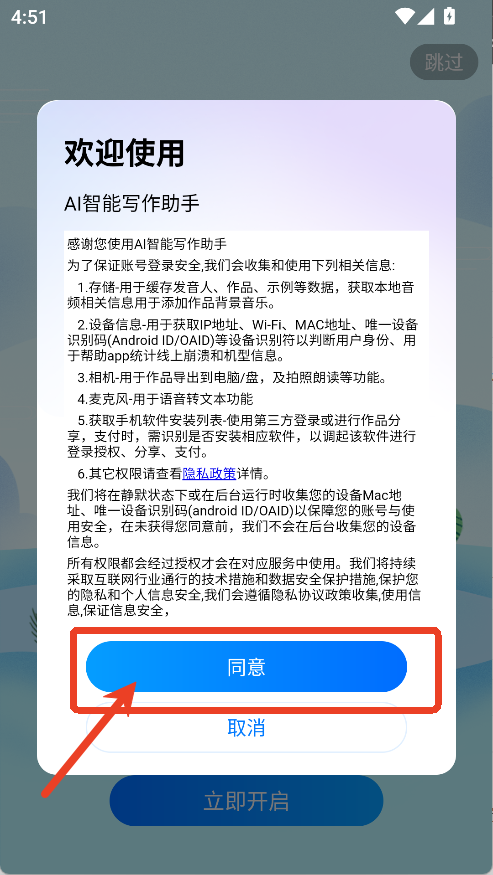 1、安装本站的AI智能写作助手,进入软件,点击“立即开启”,开始使用。
