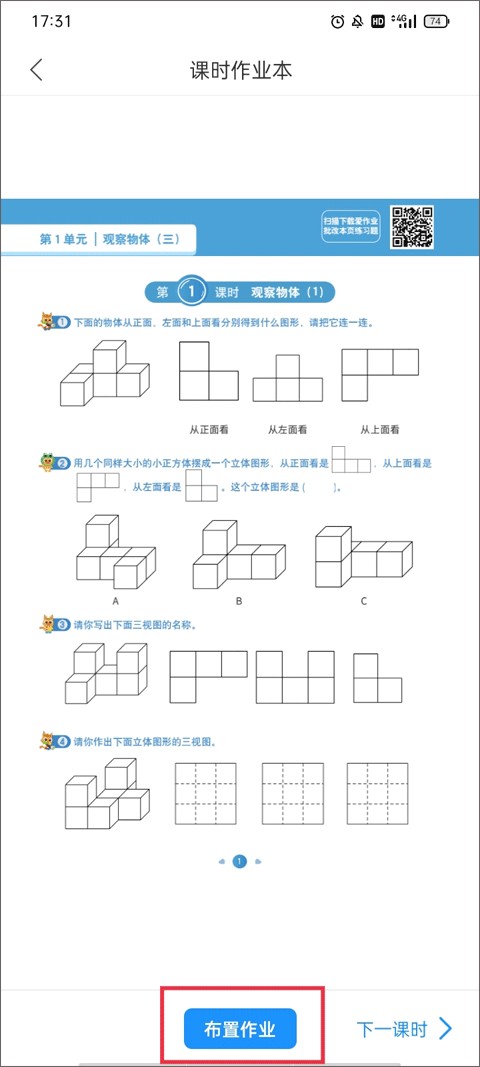 3、用户成功查看到课时作业本内的具体内容后,可点击下方的【布置作业】选项,开展相关操作。