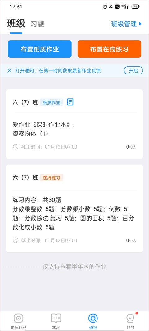 5、学生们在班级界面就能看到用户发布的纸质作业。